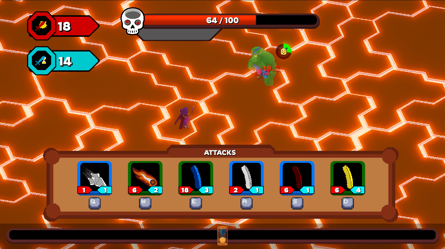 BATTLE > Use Q , W , E , A , S , D to trigger the respective attacks