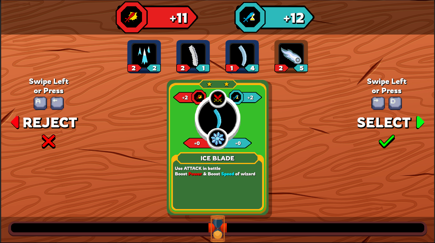 REJECT CARDS > Use A or Left Arrow or Swipe Left to reject cards.