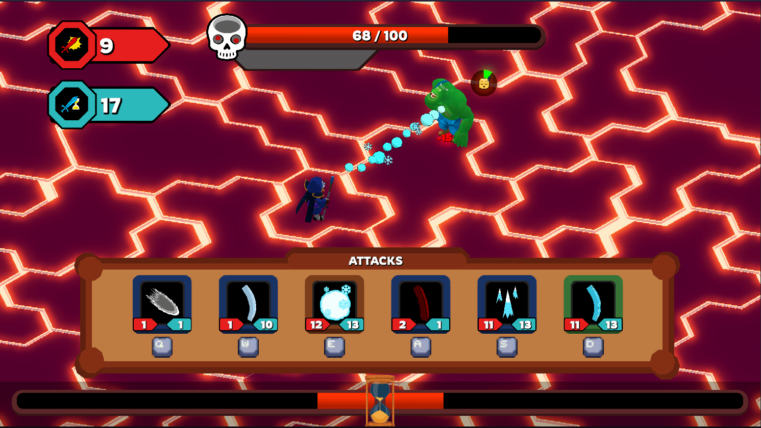 BATTLE > Use Q , W , E , A , S , D or Click/Tap to trigger the respective attacks.